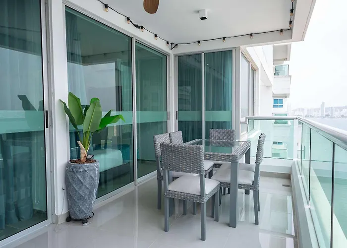 El apartamento Tres Habitaciones - Vista Al Mar, que incluye una terraza, se encuentra a 400 metros de la Bahia de Santa Cruz de Castillo Grande. Este apartamento está situado en el distrito Castillogrande, a unos 4 km del Parque Fernández de Madrid.